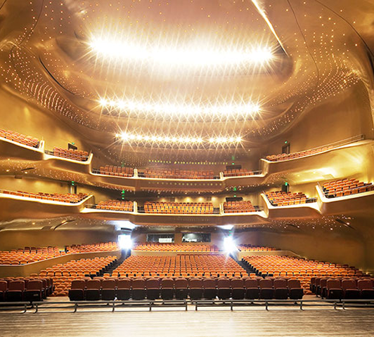The theatre is the crystallization of art and technology. It is the most difficult project of all building types, involving more than 20 disciplines. Zhongfu Thai team always focus on the theater building, through the technical research and development and technical research, around the theatre construction decoration technology, architectural acoustics, sound, lighting and stage technology, build the theatre construction field the most core the theatre sound and light integration technology, and is widely applied in theaters, concert halls, conference center, hall, multi-function hall, hall, old theatre cinema reconstruction project, as well as the topic shows, sports venues, and performing arts center, community culture center, cinema, KTV, private cinema, private television studios, and other fields.